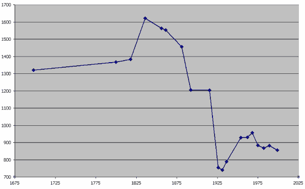 Le graphique ci-dessous montre l'évolution de la population depuis 1698.